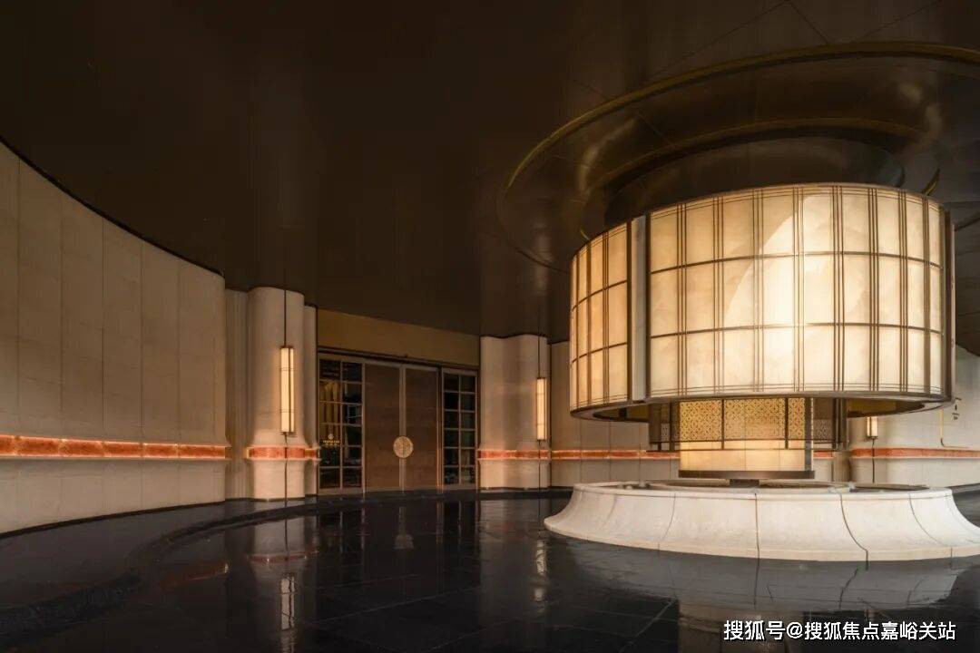 的底座,搭配以安哥拉黑大理石、透光云石,而大门精选伊朗进口水墨玉天然石材、两侧腰线搭配橙皮红石材,奢华典雅。迎宾楼内选用非遗金箔艺术画,每一幅的制作周期近3个月,可见用心。