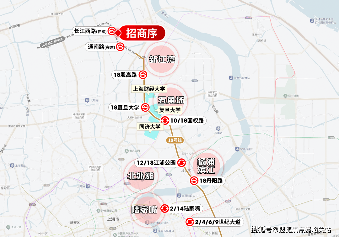 这条线路云集大量高校、科研单位及科创企业,尤其五角场和杨浦滨江的科创产业正蓬勃向上,18号线的串联,既为业主通勤提供了方便,更为招商序和淞南提供了源源不断的人才输入