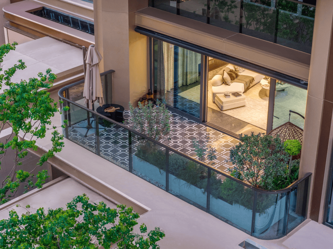 在如此大尺度的露台面前,市面上曾风靡的双联阳台、跑道式阳台,都瞬间黯然失色。