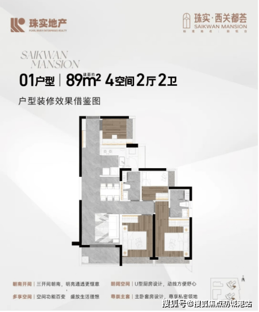 珠实·西关都荟当前在售主力户型为建面约89-142㎡的四至五空间,是西关板块唯一的100%纯四房起步社区,同时具备100%使用率、100%N+1房设计的优势,在整个荔湾区都极为稀缺。这样的户型规划精准定位改善型住户,有效提高了社区圈层纯度,满足全周期家庭的居住需求。