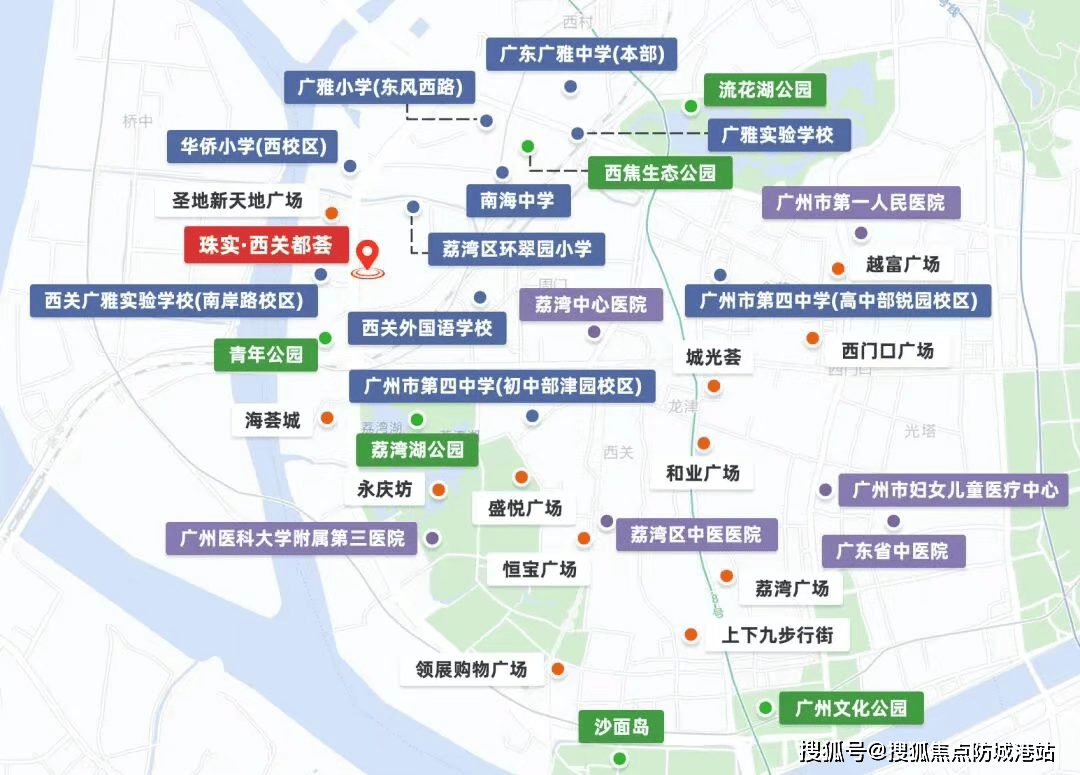 4. 成熟的生活配套:项目周边商业、医疗、休闲等配套设施完善,步行范围内即可满足日常生活所需,中山八、北京路等商圈环绕,荔湾湖公园、珠江等自然景观触手可及,生活烟火气与品质感兼具。