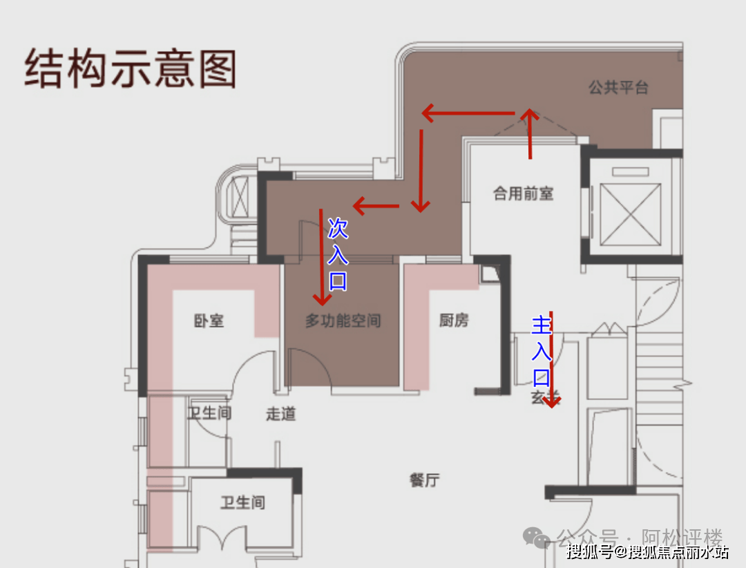 电梯前室不仅能拓展使用空间,还能作为归家过渡区,实用性极强。甚至还隔离了电梯核心筒与室内空间,避免了噪音干扰。