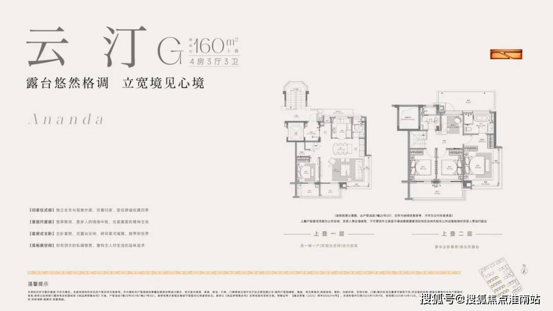 三面宽、所有卧室朝南的产品,相比双面款的产品而言,采光、视野、舒适度都更佳。其次,上叠户型预计使用率最高约